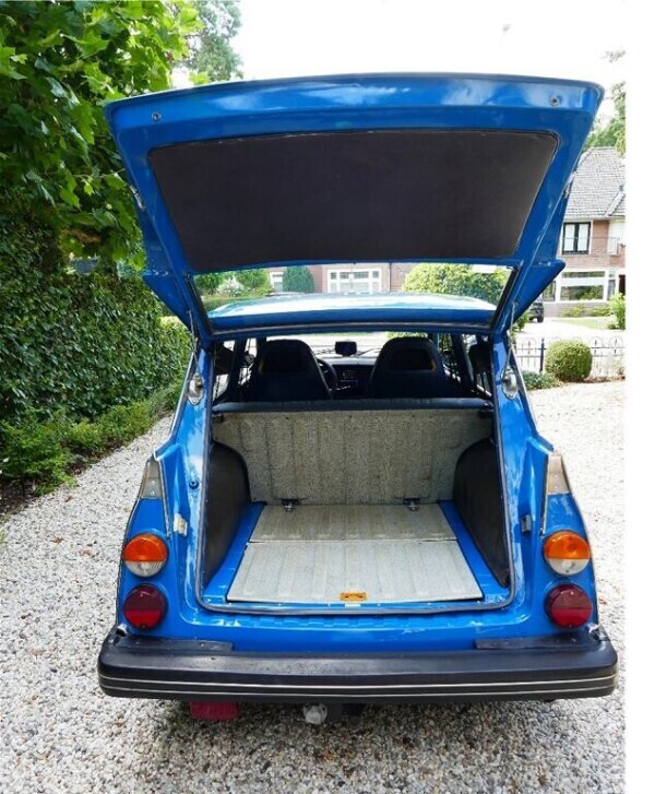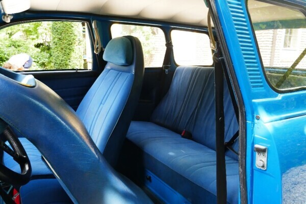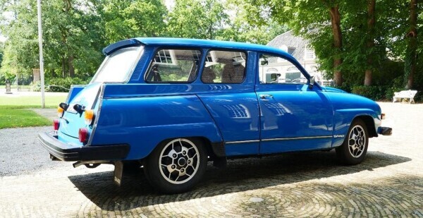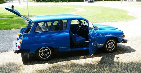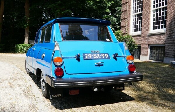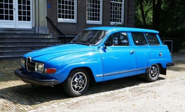 Schitterende mooie Saab 95V4 L, 29-08-1977, in unieke kleur Cerulean Blue (B09H – hemels blauw - slechts 1 jaar geleverd) met blauw interieur met originele SAAB 95/96 lichtmetalen velgen (type soccerball) met kleine SAAB kunststof naafkappen. Kenteken : 29-SX-99