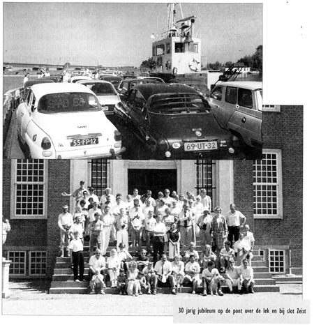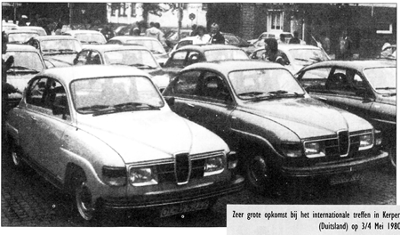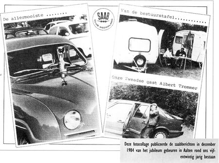 In de zomer van dat jaar viert Saab in Zweden een groot feest. De fabriek bestaat vijftig jaar en de autoproductie is nu veertig jaar op gang. Een grote groep uit Nederland maakt het feest mee. Op dat feest zien we voor het eerst een Saab Monte-Carlo V4 met een Saabo caravan. Die dateert weliswaar uit de jaren zestig, maar is door het geringe aantal geproduceerde eenheden een zeldzaamheid.