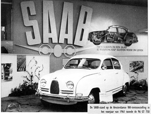 In het voorjaar van de oneven jaren wordt altijd de Auto RAl gehouden. Zo ook in 1961. Een mooie gelegenheid voor de Saabimporteur om een 96 GT850, die later de naam Saab Sport zal krijgen, in Nederland te laten zien. In maart gaan we in een flinke colonne op bezoek bij de, in die jaren actieve, Belgische Saab Club die ons in Antwerpen verwelkomt.