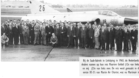 De Saabdealers gaan in september voor het eerst naar de bakermat van Saab in twee Dakota’s van Martin’s Air Charter naar de autofabriek in Trollhättan en de vliegtuigfabriek in Linköping. Een groot feest en zeer interessant. De terugvlucht met tegenwind van Linköping naar Schiphol duurt meer dan vijf uur … Kom daar nu eens om!
